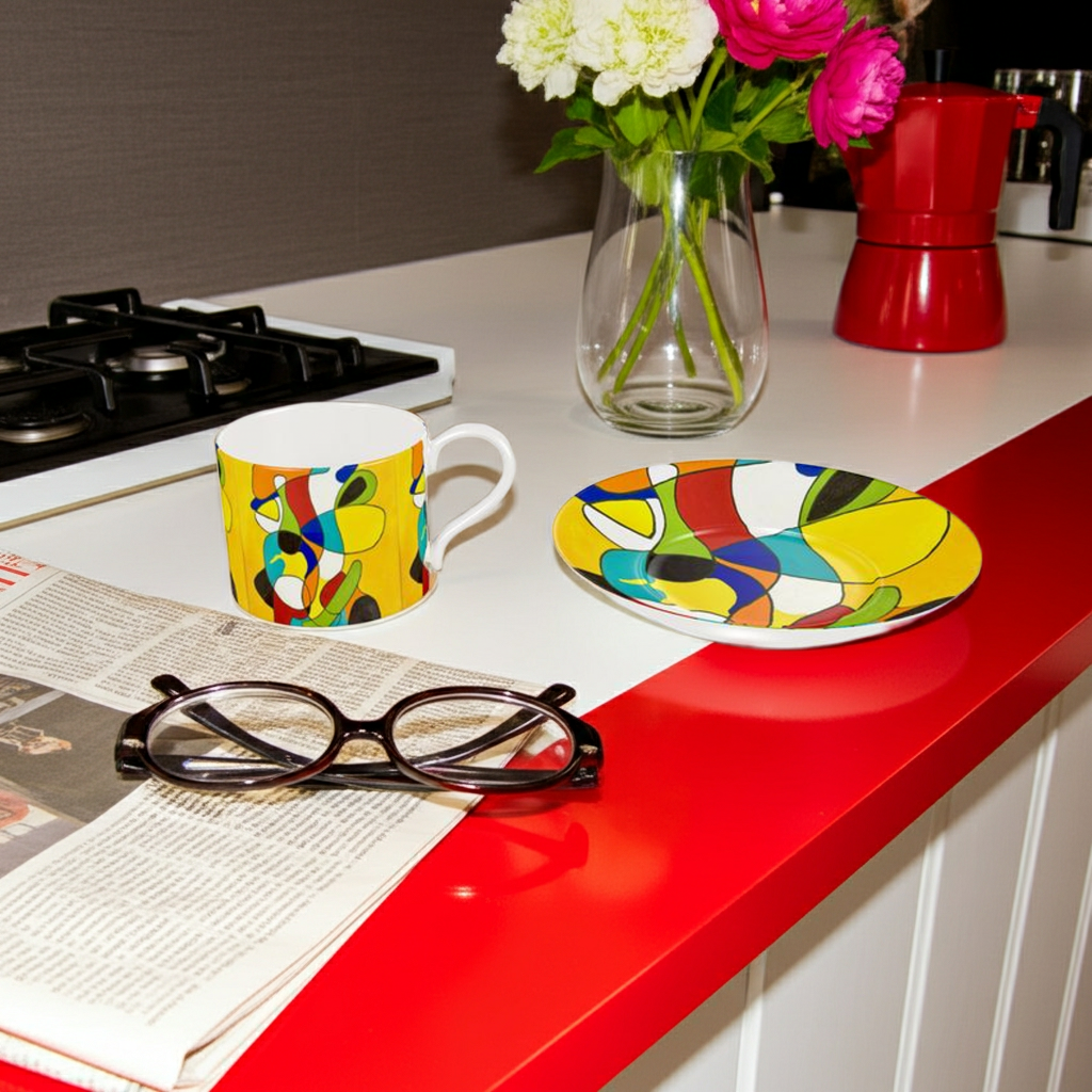 Elevate your tea or coffee experience with our Bone China Cup & Saucer. Crafted with bright, vibrant colors and a design taken from an original painting by TaCArtDesigns, this cup is the perfect gift for yourself or a loved one. Available in both tea cup and espresso sizes, it's a funky addition to any home. Complete the look with a matching teapot or coffee pot.