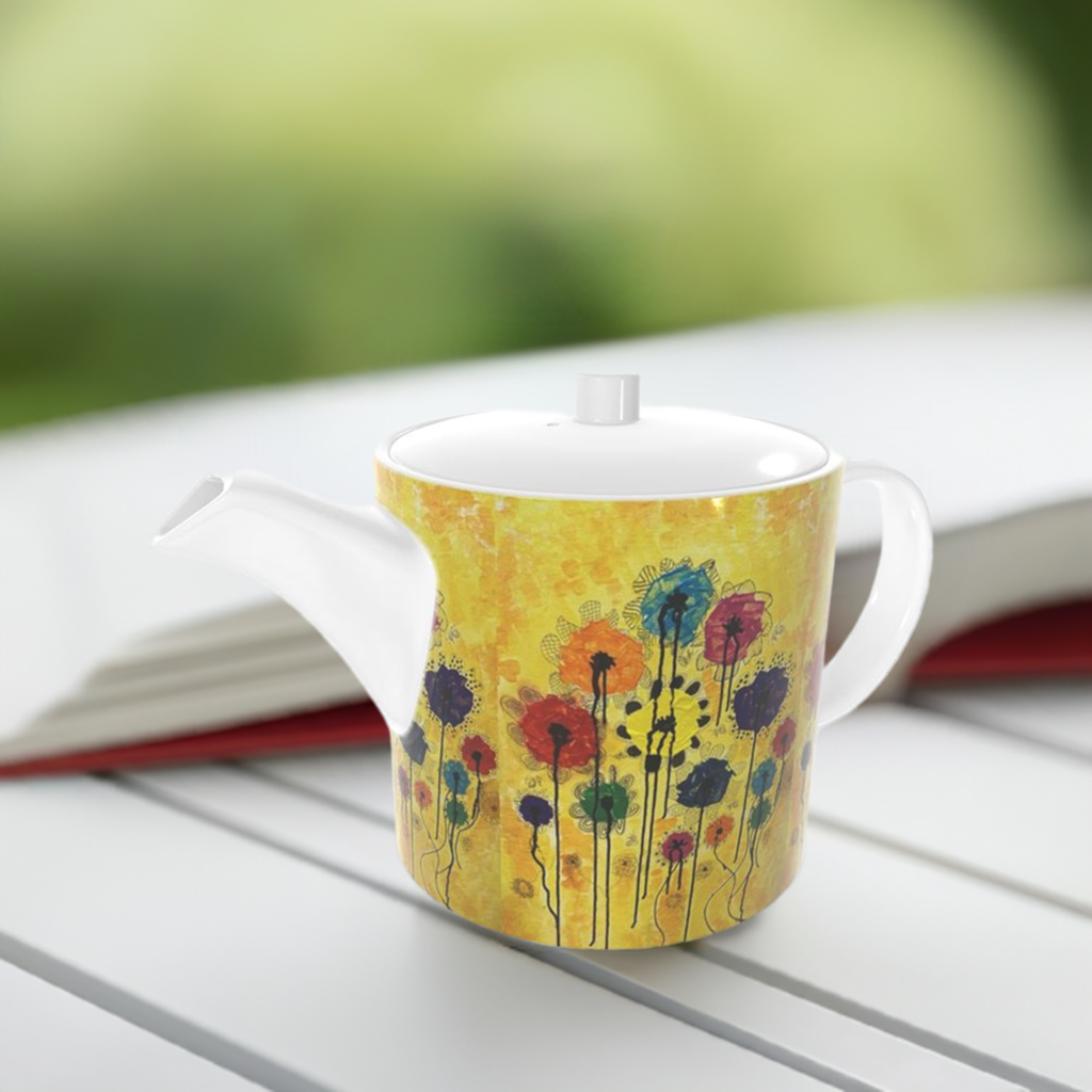 Indulge in the sophisticated luxury of our Bone China Teapot. Featuring an original abstract design crafted from an original TaCArtDesigns painting, this teapot is a statement piece. Complete the experience with matching cups and saucers, elevating your tea time to a true work of art.