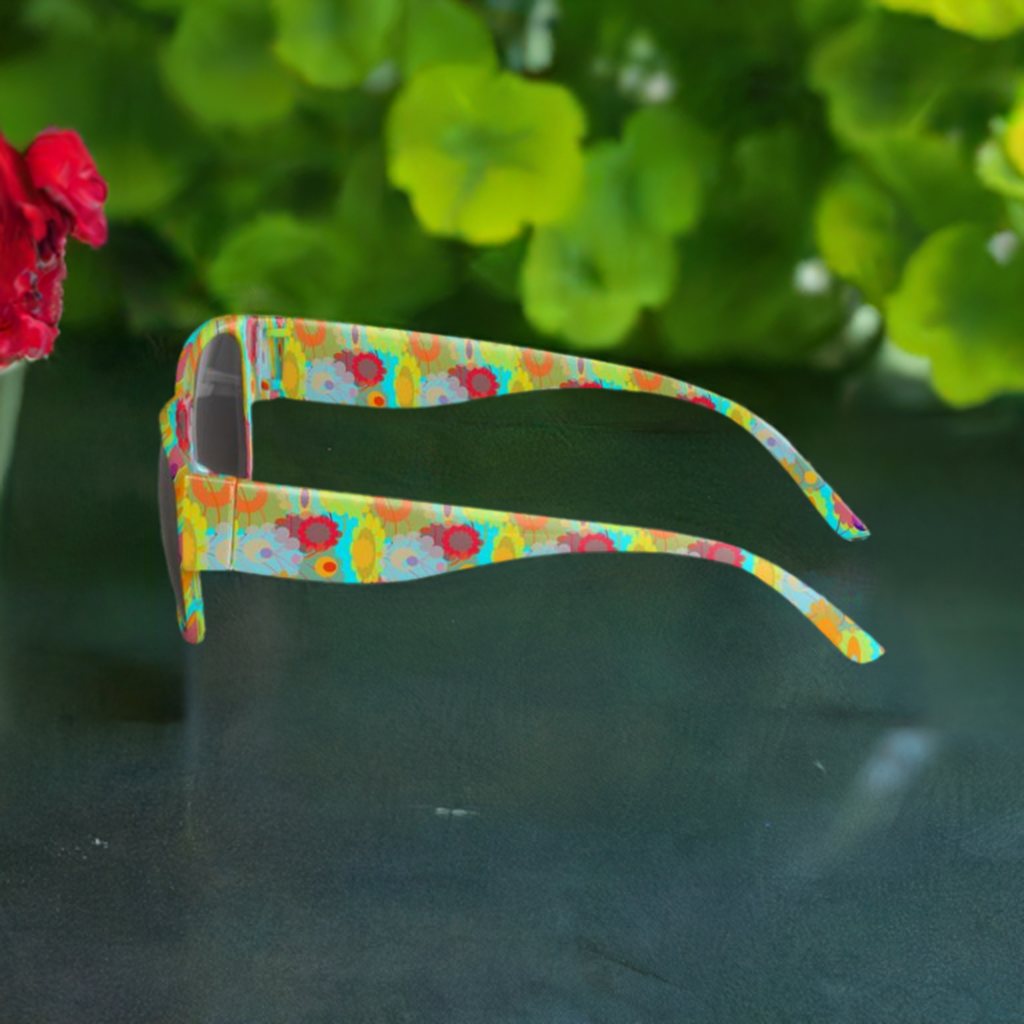 Featuring a unique floral abstract design, these sunglasses will add a pop of vibrant bright colors to any summer outfit. Stand out from the crowd with this stylish accessory.