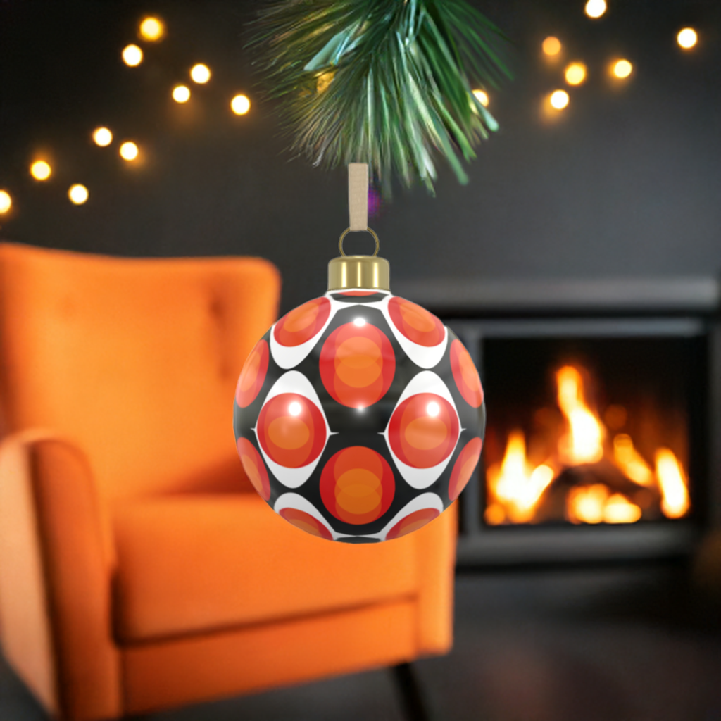 Add a pop of retro charm to your décor with our Unique Abstract Bone China Bauble. Featuring vibrant oranges, black and white hues, this statement bauble is sure to impress. (Retro-chic at its finest!)