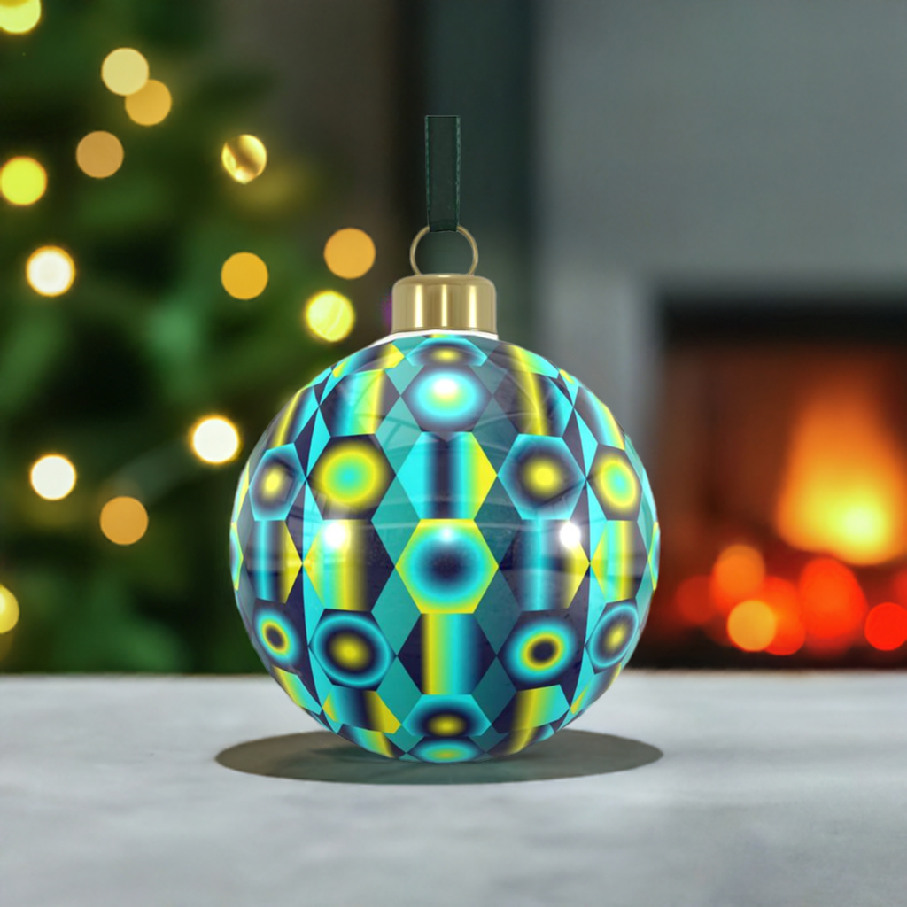 Stand out from the crowd with our Unique Abstract Bone China Bauble! Featuring a hexagonal design in eye-popping greens, blues, and yellows, this bauble is sure to catch your eye. Bring a pop of color to your home decor and display this one-of-a-kind piece with pride.